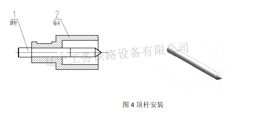 安裝鉆頭時確認機器還沒有發(fā)動!然后將選好的鉆頭插入頂桿(見圖 4 頂桿安裝),把配好頂桿的鉆頭放進主軸內孔,用力頂住鉆頭,在用內六角扳手旋緊緊固螺釘。